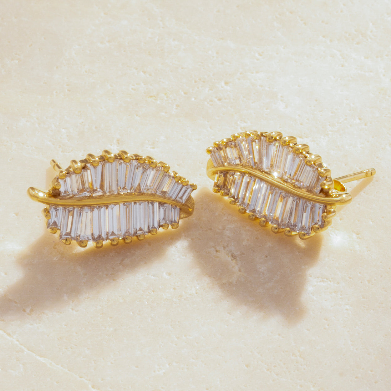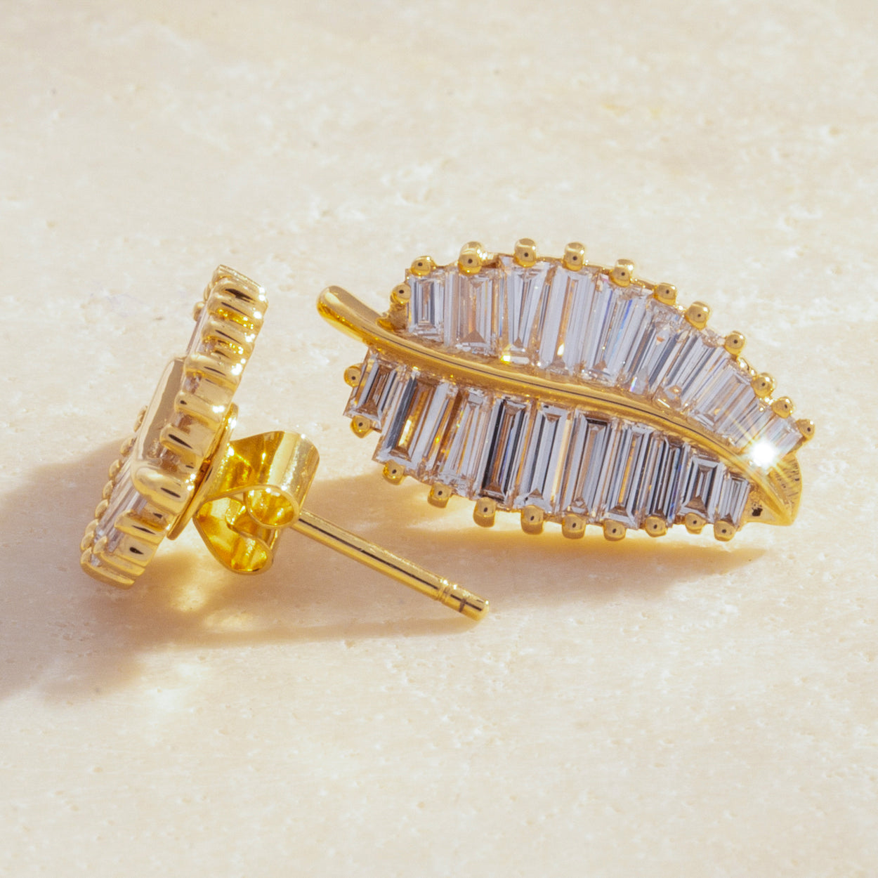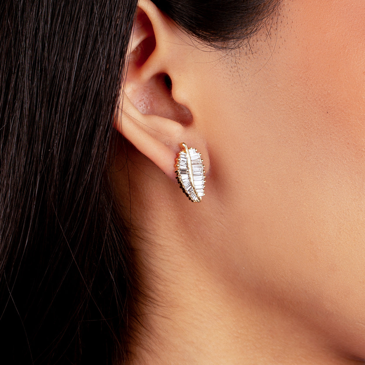 Introducing our stunning 18K Gold Baguette Diamond Palm Bliss Studs, a celebration of elegance and nature's beauty. Crafted with precision, these studs feature mesmerizing baguette diamonds intricately set in lustrous 18K gold, resembling the graceful palm leaves. Elevate your style with these timeless earrings, perfect for adding a touch of sophistication to any look.