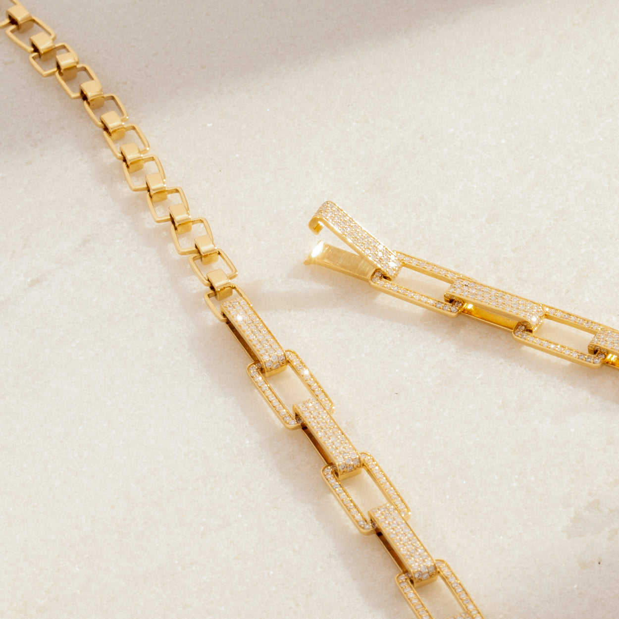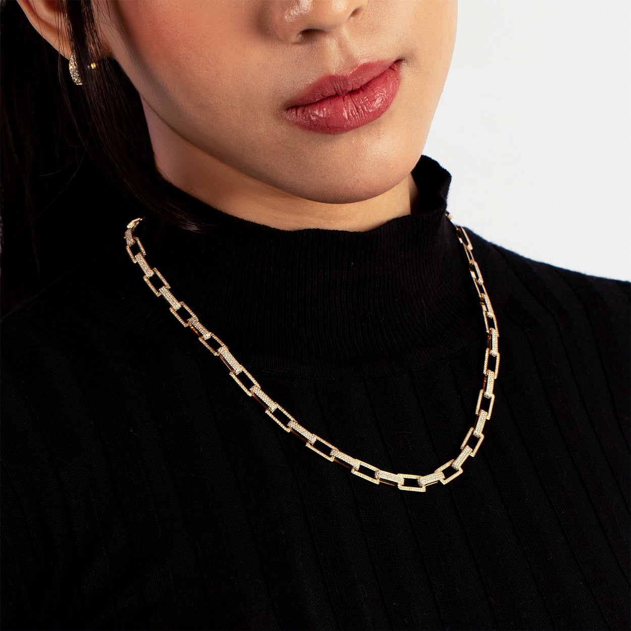 Introducing our exquisite 18K Gold Diamond Paved Collar Necklace, a masterpiece of sophistication. Each diamond intricately set in a dazzling collar design exudes opulent charm and elegance. Elevate your style effortlessly with this captivating piece, a symbol of refined taste and timeless luxury.