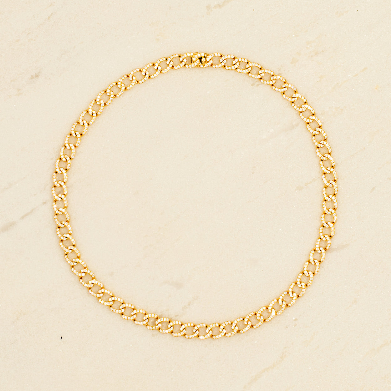 Introducing our exquisite 18K Gold Diamond Paved Cuban Link Choker, a fusion of luxury and sophistication. Crafted with precision and adorned with dazzling diamonds, each link exudes opulence and charm. Elevate your style effortlessly with this timeless piece, a symbol of refined taste and radiant glamour.