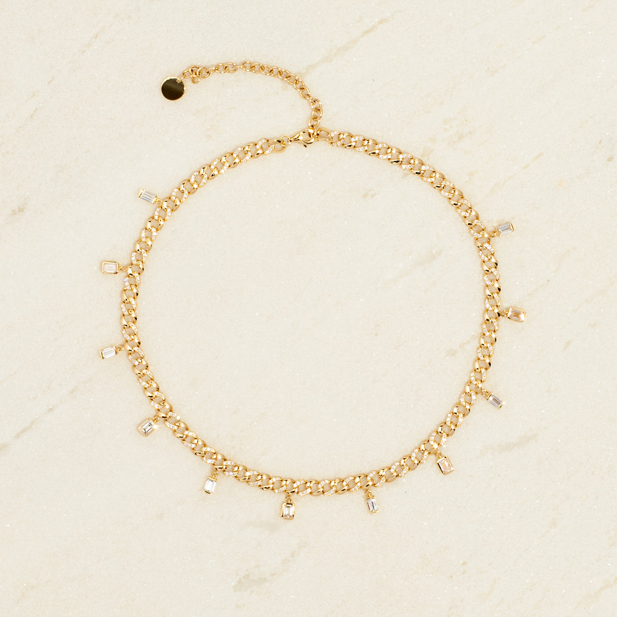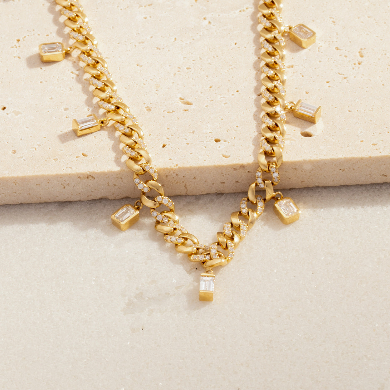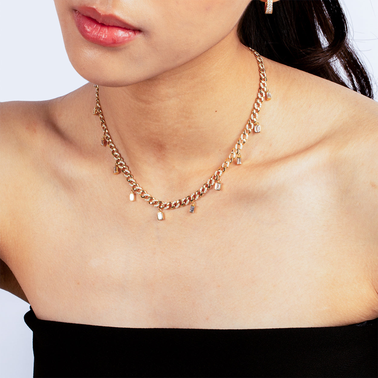 Introducing our captivating 18K Gold Emerald Duo Baguette Diamond Drop Choker, a harmonious blend of luxury and allure. Featuring emerald duo baguette drops accented with dazzling diamonds, this piece exudes opulence and sophistication. Elevate your style effortlessly with this exquisite choker, a symbol of refined taste and timeless elegance.