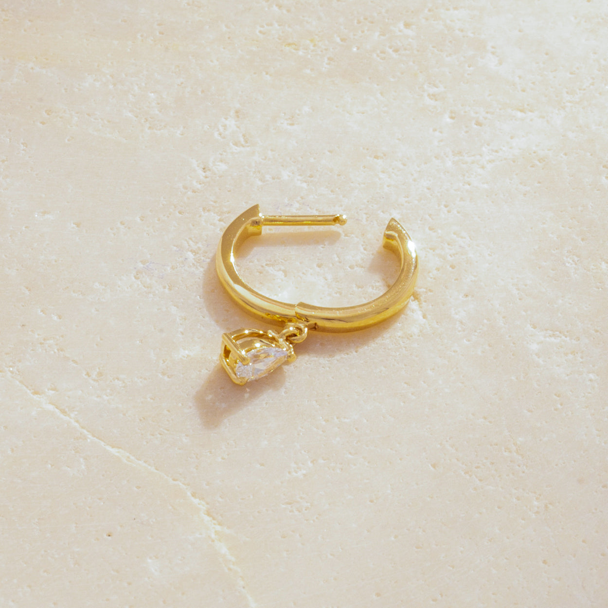 Introducing our exquisite 18K Gold Huggies with Pear Diamond Drop, a blend of sophistication and elegance. Crafted with precision, these Huggies earrings feature dazzling pear-shaped diamonds suspended delicately from lustrous 18K gold hoops. Elevate your style with these timeless earrings, perfect for adding a touch of glamour to any look.