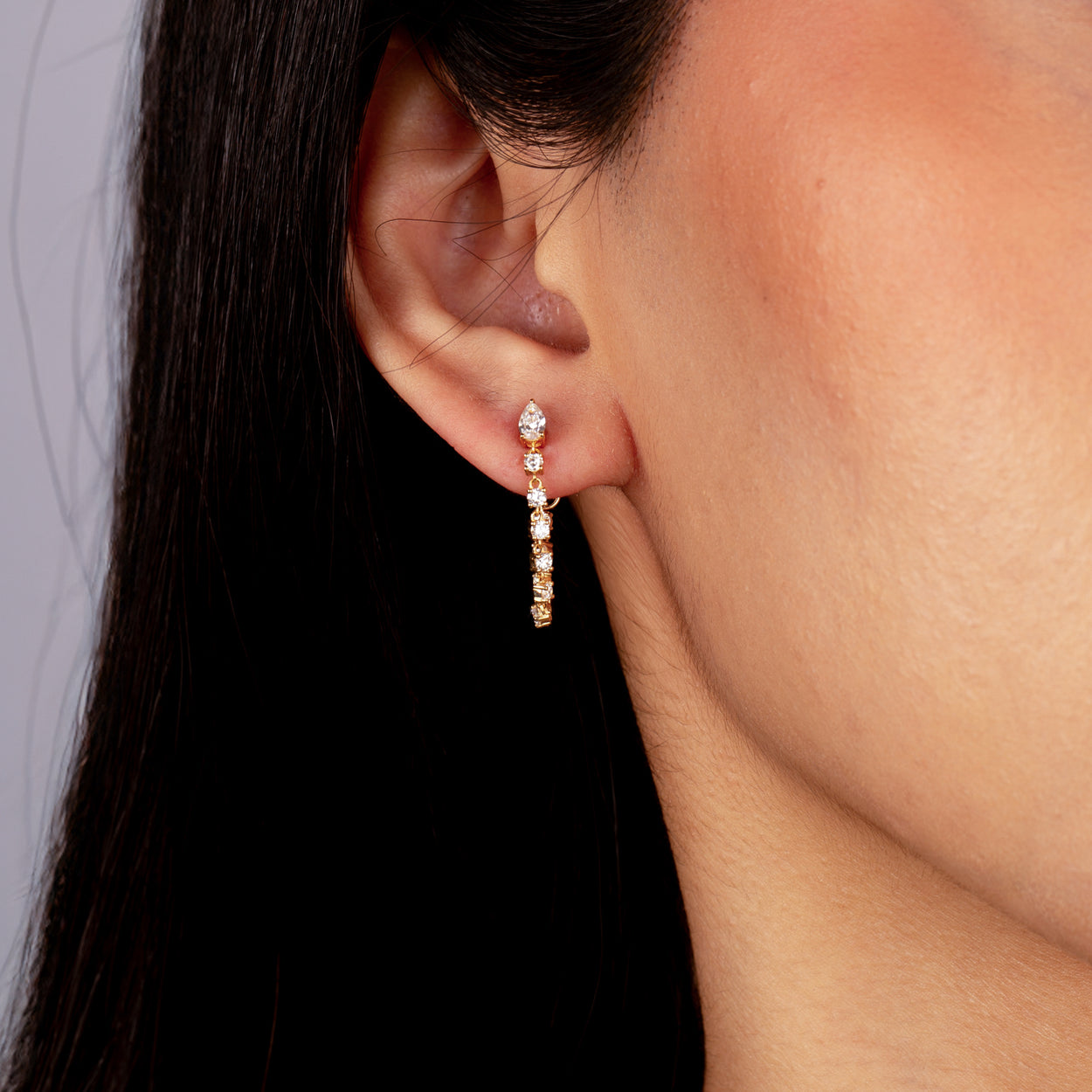 Indulge in timeless elegance with our 18K Gold Loop Earrings featuring stunning pear-shaped studs. Crafted with precision and finesse, these earrings boast a luxurious 18K gold setting, exuding sophistication and charm. Perfect for any occasion, they add a touch of glamour and refinement to your ensemble, elevating your style effortlessly.