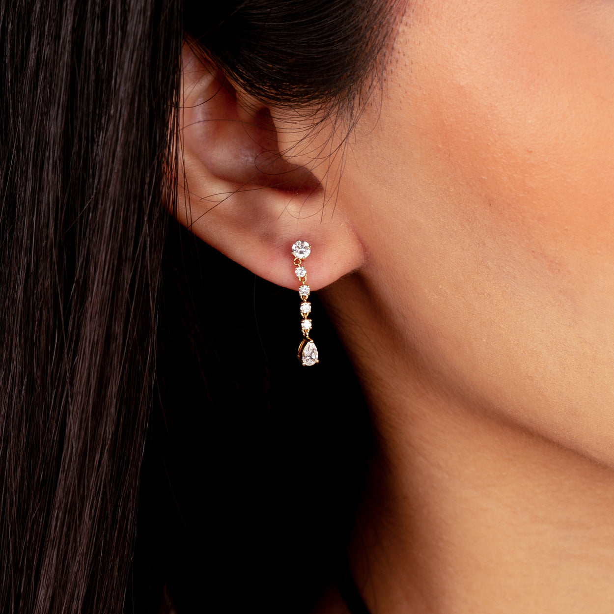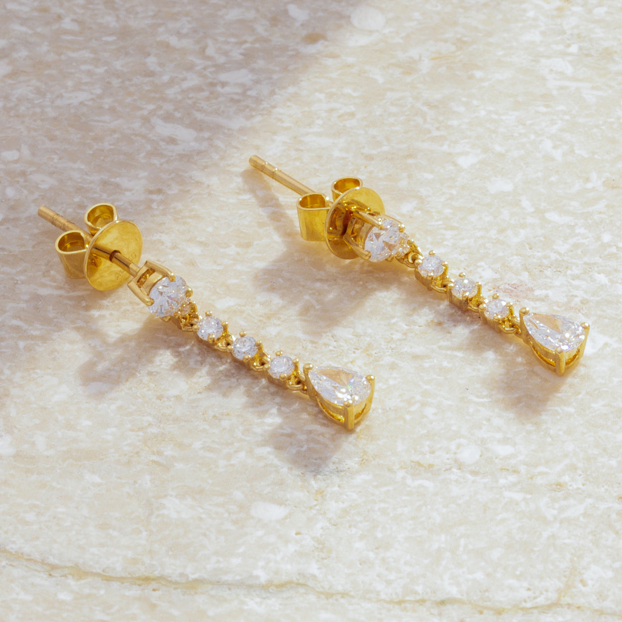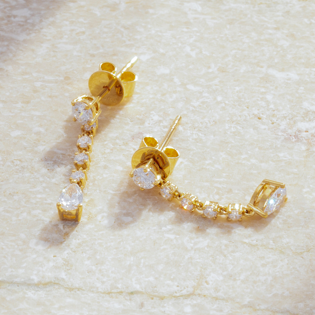 Introducing our breathtaking 18K Gold Pear Cascade Diamond Rope Earrings, a fusion of elegance and opulence. Crafted with precision, these earrings feature a cascade of pear-shaped diamonds delicately arranged along a lustrous 18K gold rope. Elevate your style with these statement earrings, perfect for adding a touch of glamour to any occasion.