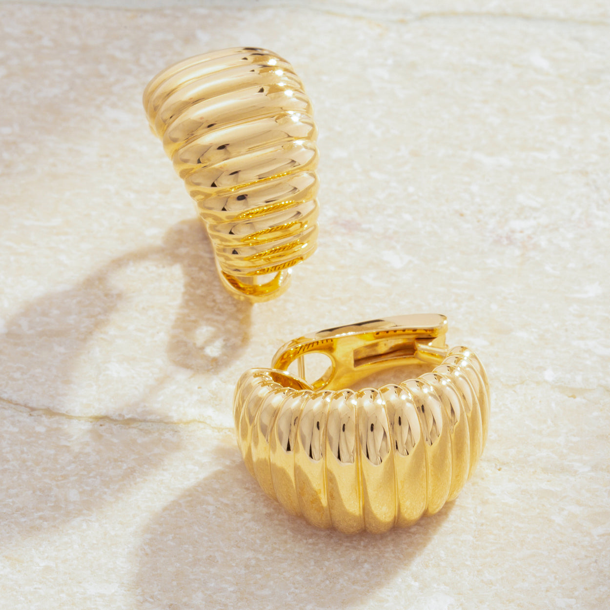 Embrace coastal elegance with our 18K Gold Shell Huggies, each intricately crafted to capture the beauty of the sea. Their delicate shell design exudes charm and sophistication. Elevate your style effortlessly with these luxurious earrings, perfect for adding a touch of seaside glamour to any ensemble. A symbol of refined beauty and timeless allure.