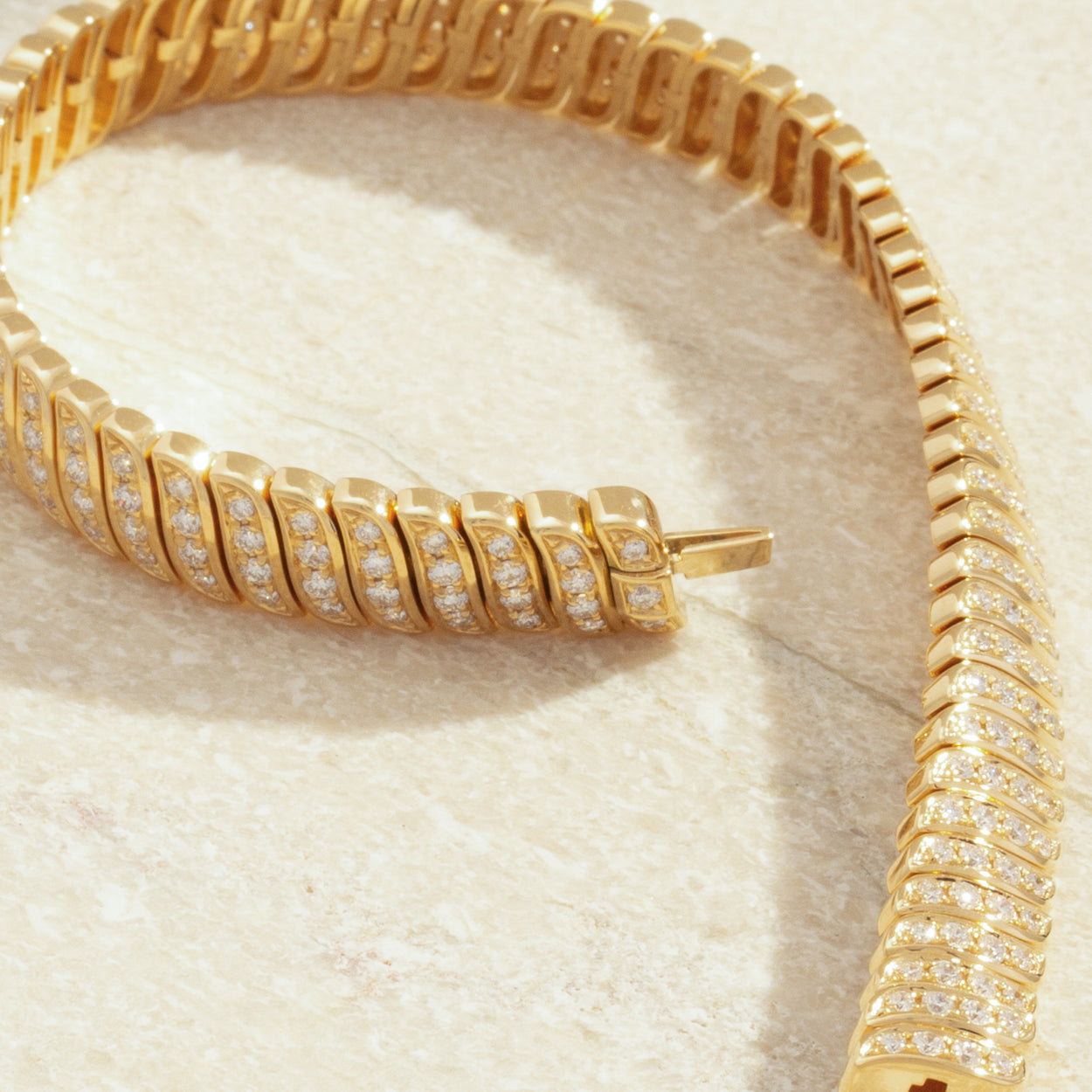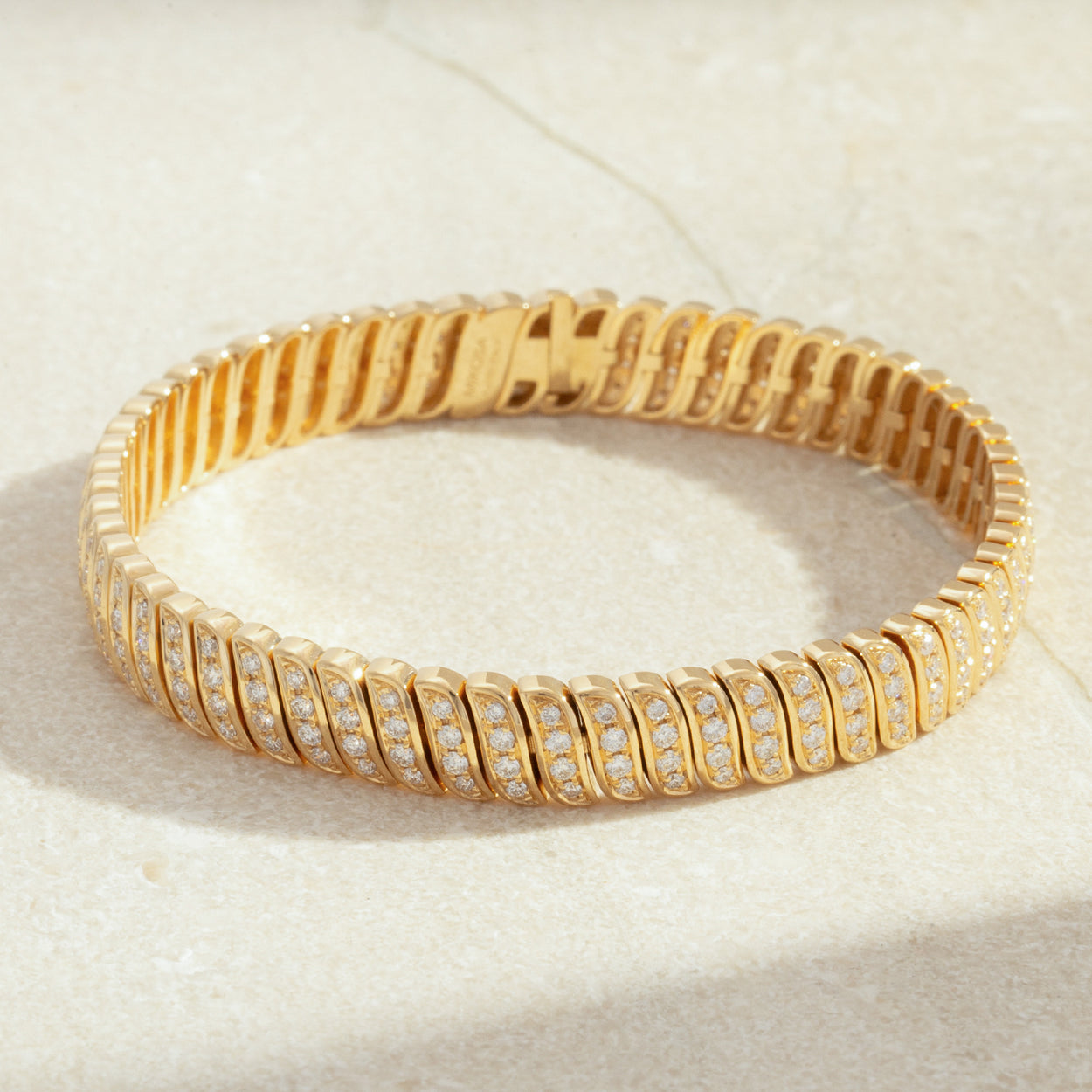 Introducing our mesmerizing 18K Gold Spiral Diamond Bracelet, a testament to unparalleled craftsmanship and opulence. Featuring a captivating spiral design adorned with brilliant diamonds, it exudes grace and sophistication. Elevate your style effortlessly with this exquisite piece of luxury.