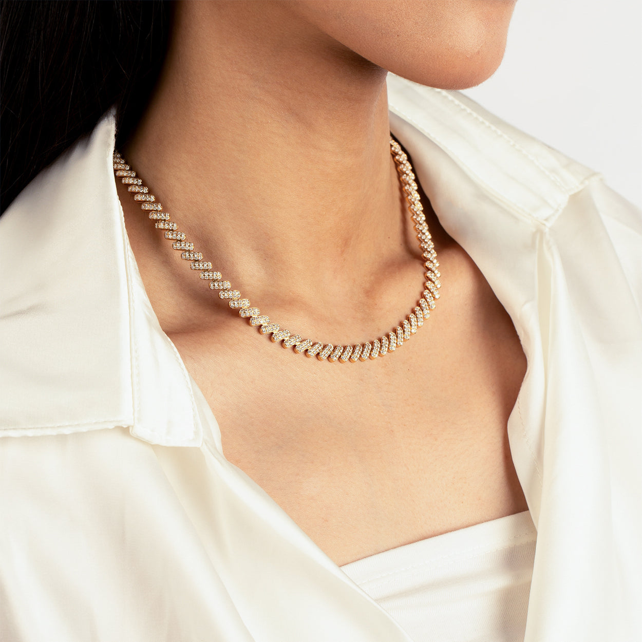 Introducing our mesmerizing 18K Spiral Paved Diamond Choker, a masterpiece of elegance and allure. Each diamond intricately set in a spiral design exudes opulence and sophistication. Elevate your style effortlessly with this captivating piece, a symbol of refined taste and timeless glamour.