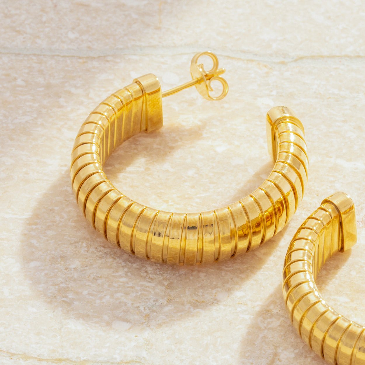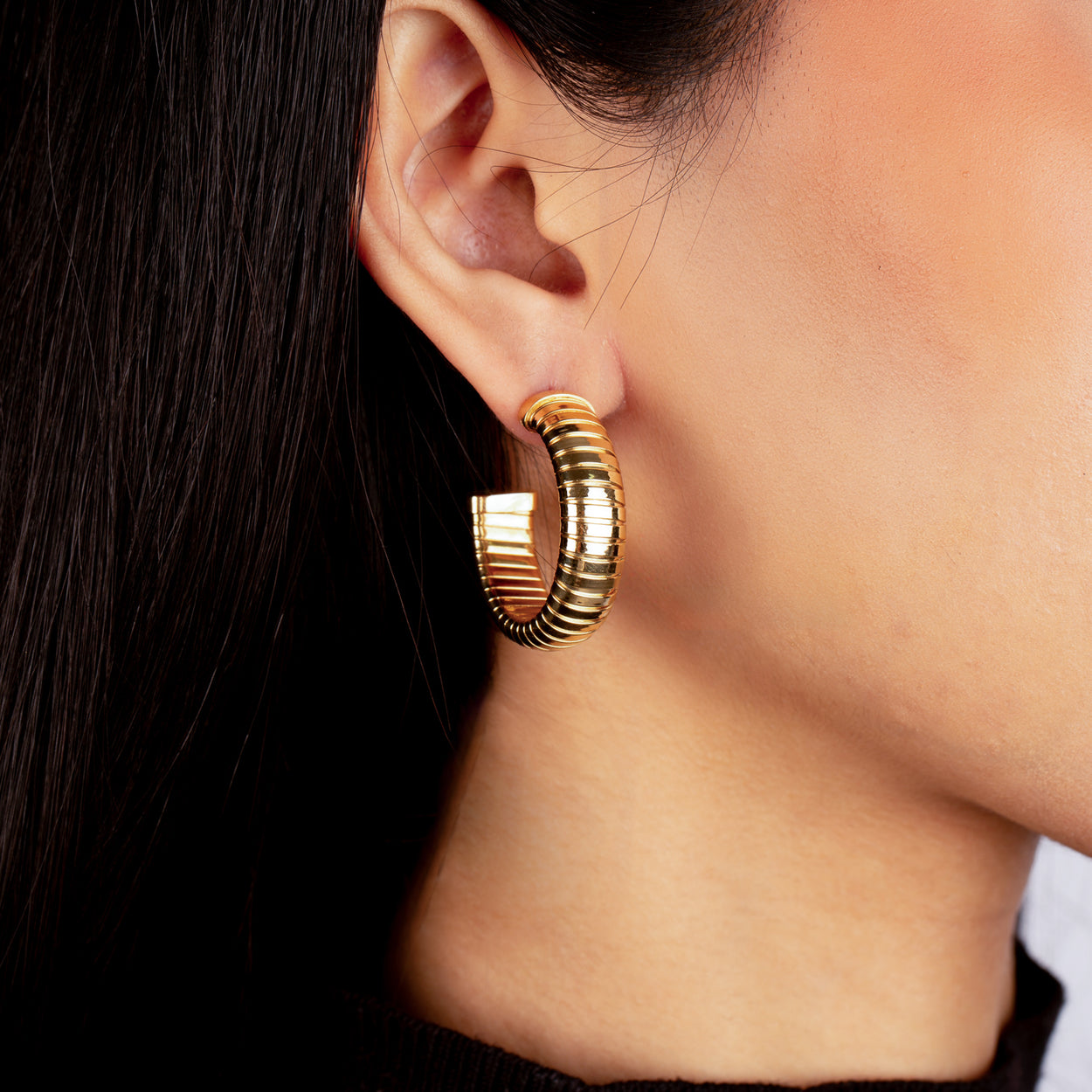 Introducing our Classic 18K Gold Shell Crescent Hoops, a timeless symbol of seaside elegance. Meticulously crafted, their shell-inspired design exudes charm and sophistication. Elevate your ensemble effortlessly with these versatile earrings, perfect for adding a touch of coastal glamour to any look. A symbol of refined beauty and timeless allure.