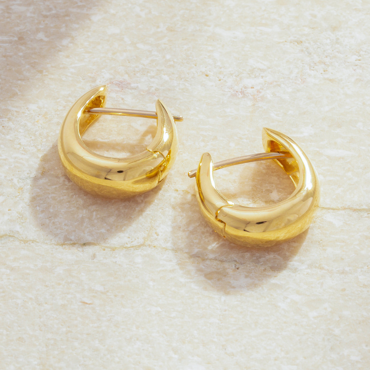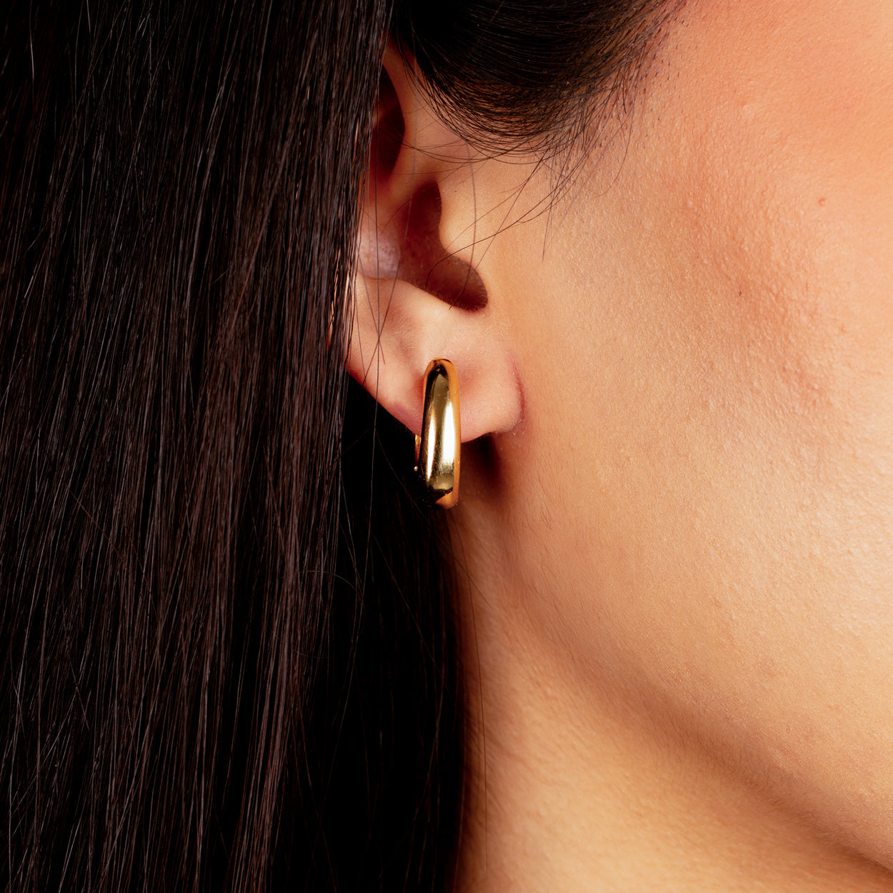 Introducing Classic Clara 18K Gold Hoops, a timeless staple of elegance. Meticulously crafted, their sleek design exudes sophistication. Elevate your ensemble effortlessly with these versatile earrings, perfect for adding a touch of timeless luxury to any look. A symbol of refined beauty and enduring style.