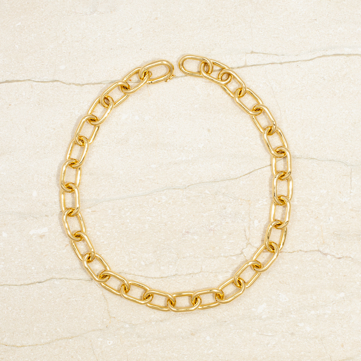 Introducing our Oval Catana 18K Gold Necklace, a harmonious blend of elegance and sophistication. Crafted with meticulous attention to detail, its oval design exudes understated charm. Elevate your style effortlessly with this luxurious piece, perfect for both casual and formal occasions.