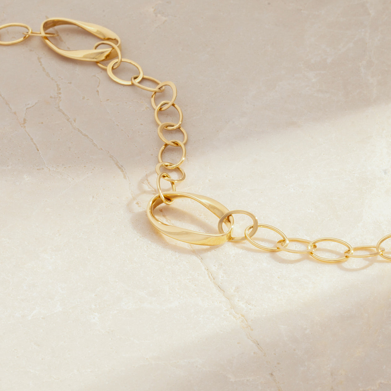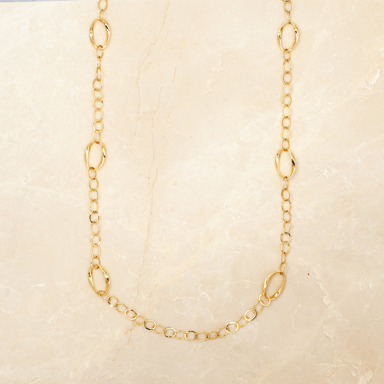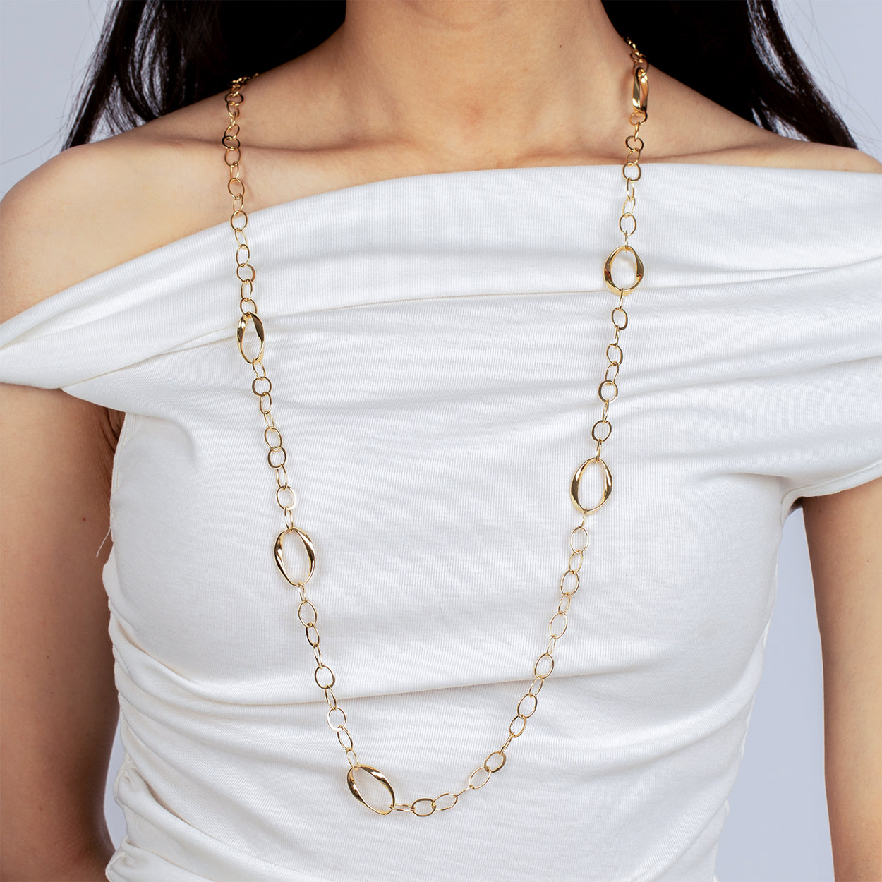 Discover sophistication with our Petal Link 18K Gold Necklace. Each link intricately crafted, resembling delicate petals. Elevate your style with its timeless elegance and luxurious allure. A symbol of refined beauty and grace, perfect for making a statement with any ensemble.