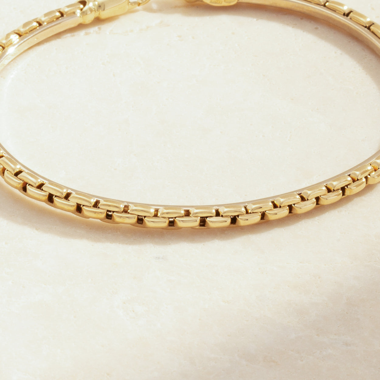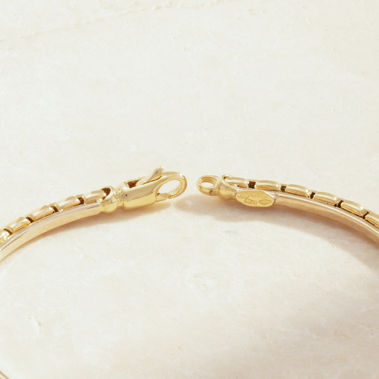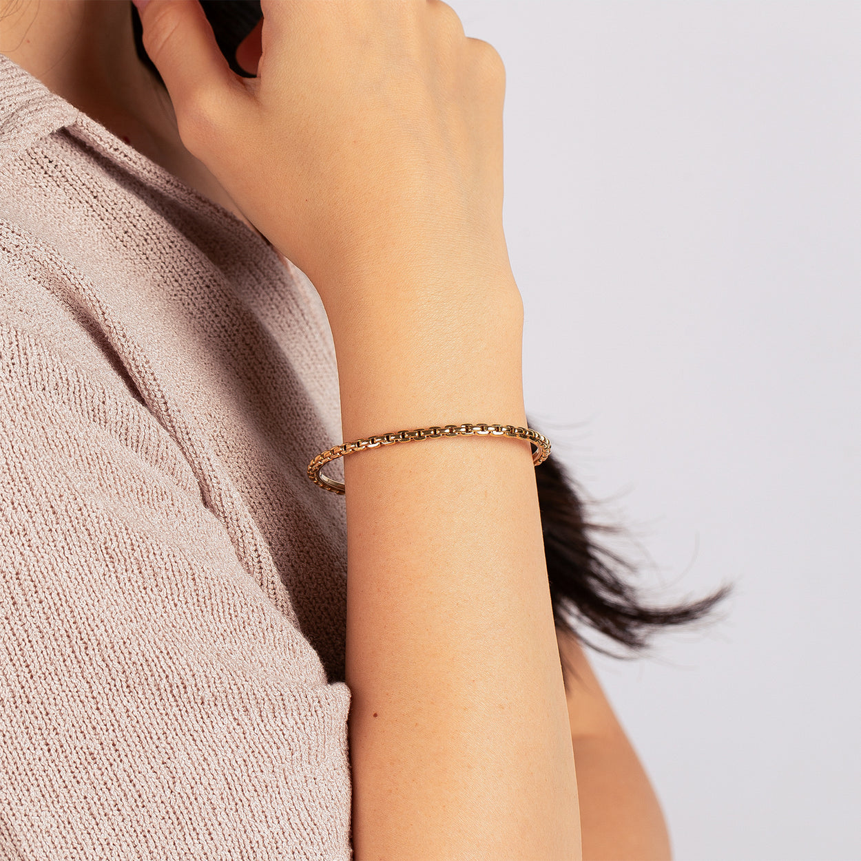 Indulge in timeless elegance with our Rectangular Link 18K Gold Bracelet. Meticulously crafted with quality in mind, each link showcases superior craftsmanship. Its enduring 18K gold ensures both luxury and durability, making it a stunning addition to any jewelry collection.