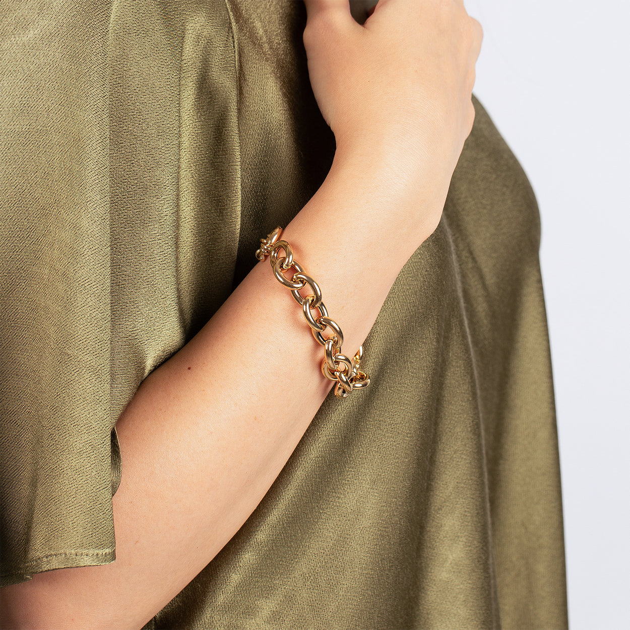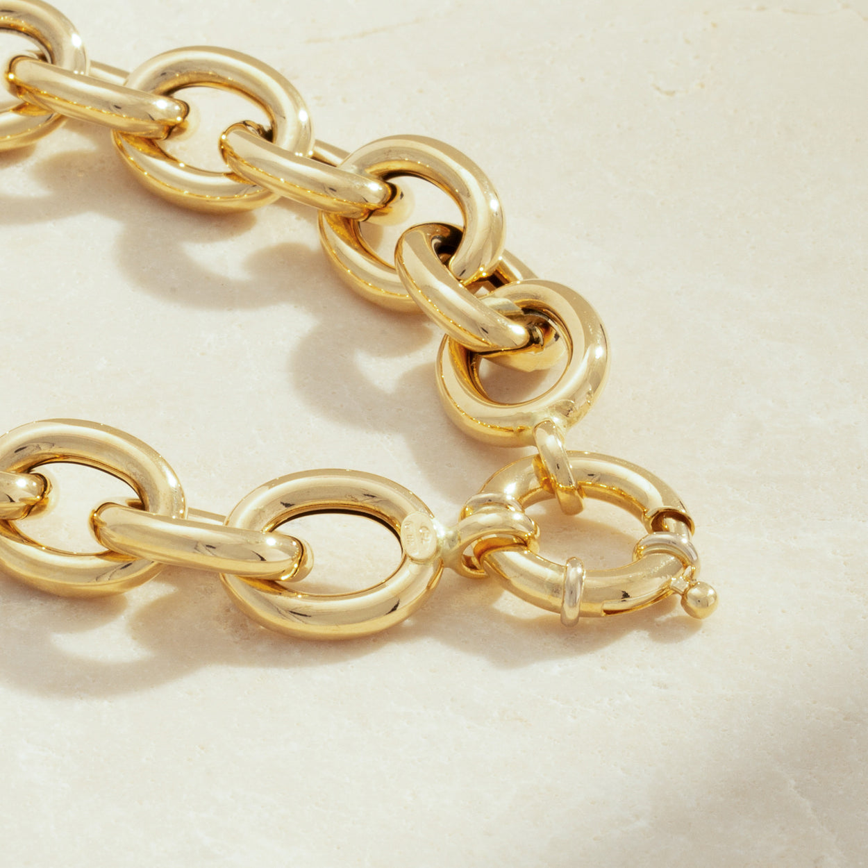 Introducing our Round Catana 18K Gold Bracelet, where elegance meets strength. Each round catana motif intricately crafted in radiant 18K gold, offering a perfect balance of sophistication and boldness. Elevate your style with this striking piece, a timeless symbol of power and grace.